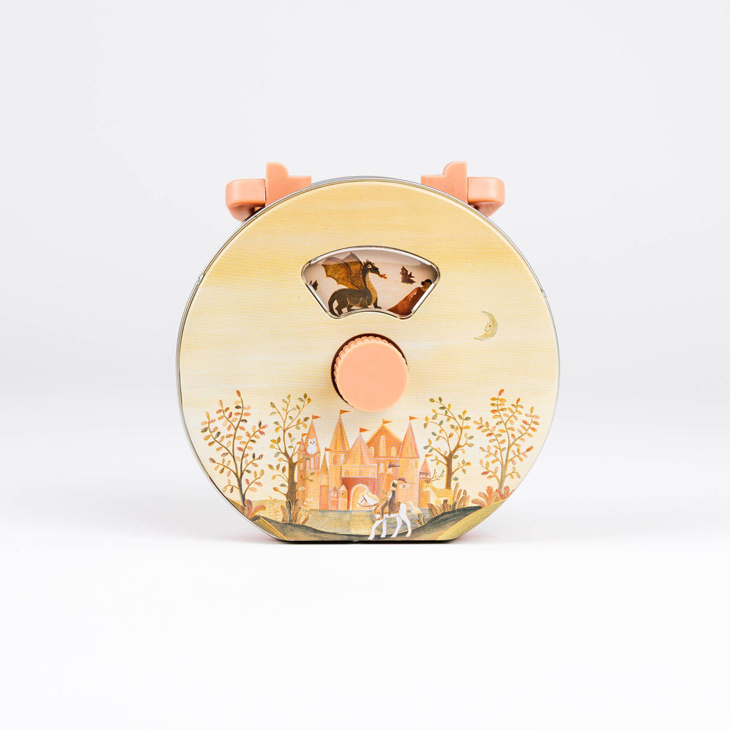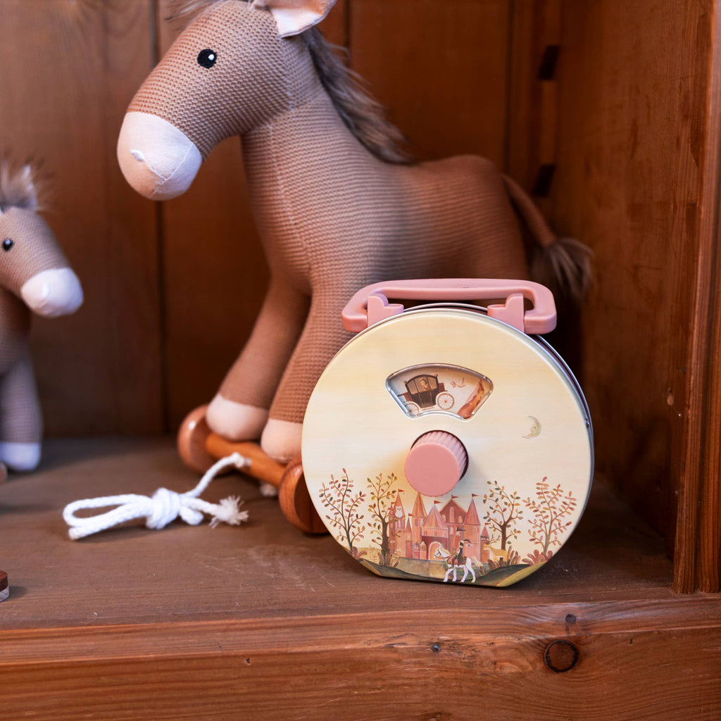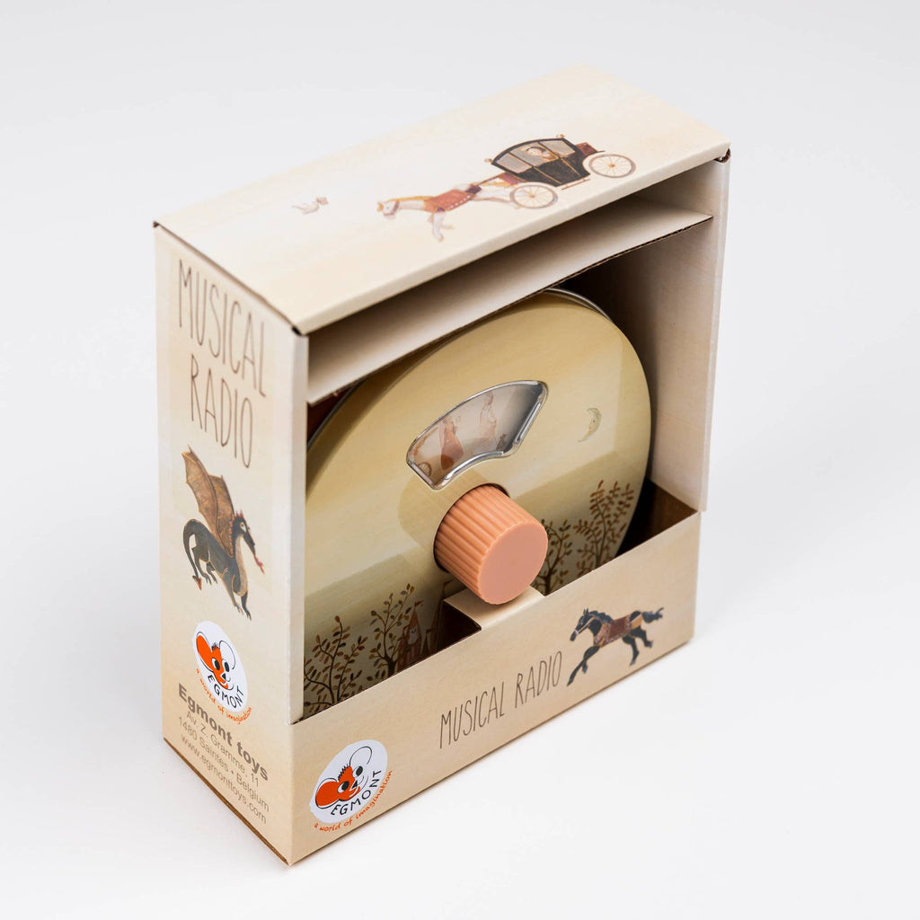 This vintage wind-up metal music radio brings back lots of memories. Through the small window you see the animals going around to the merry melody "Doggie In The Window". No batteries needed!