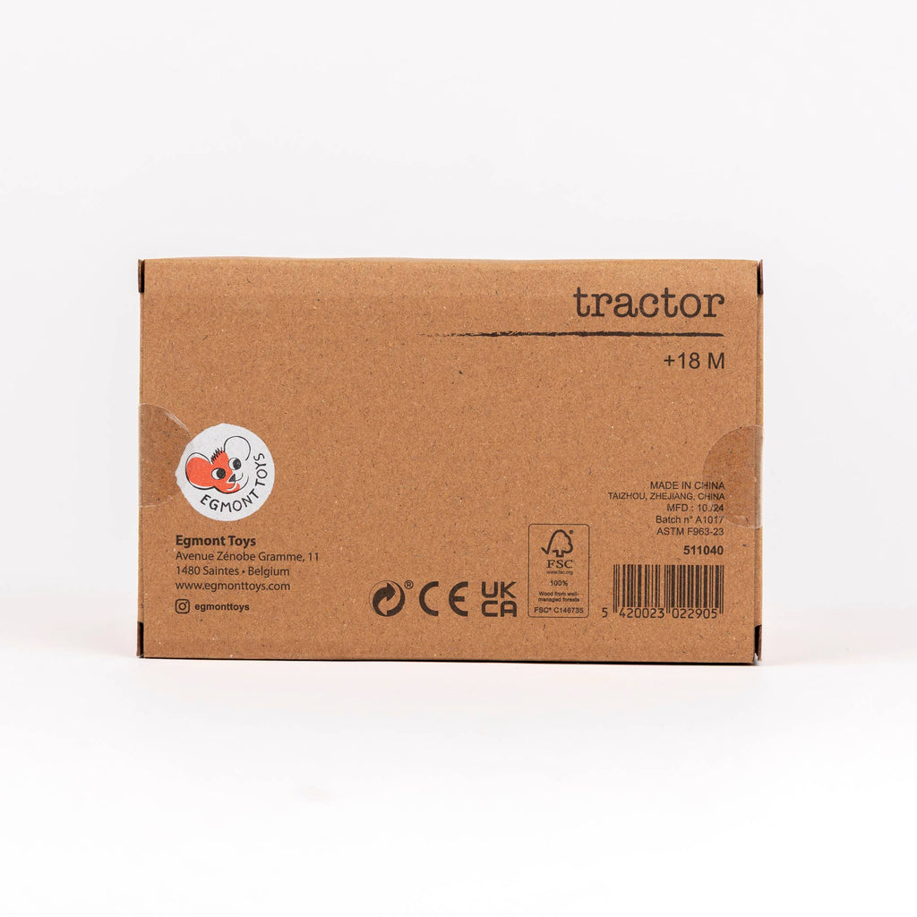 Wooden tractor is a necessity on the farm. Bright colors and chunky parts make it attractive and easy to handle.